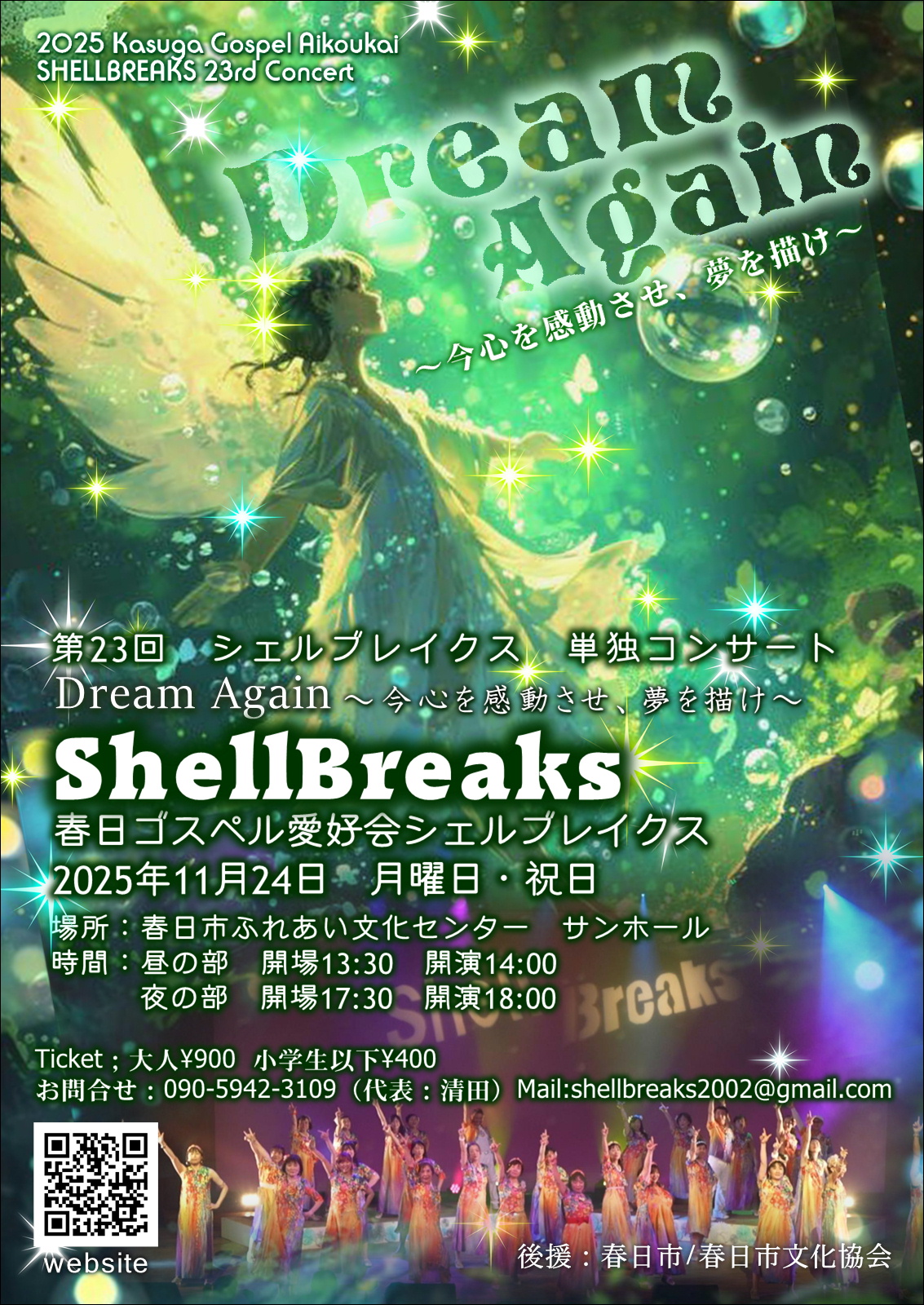 『春日ゴスペル愛好会シェルブレイクス』で検索してください!